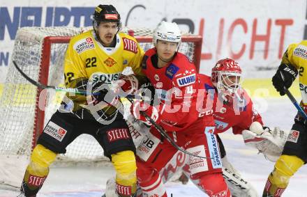 EBEL. Eishockey Bundesliga. KAC gegen spusu Vienna Capitals. Kele Steffler, Sebastian Dahm, (KAC), Julian Grosslercher (Vienna Capitals). Klagenfurt, am 22.12.2020.
