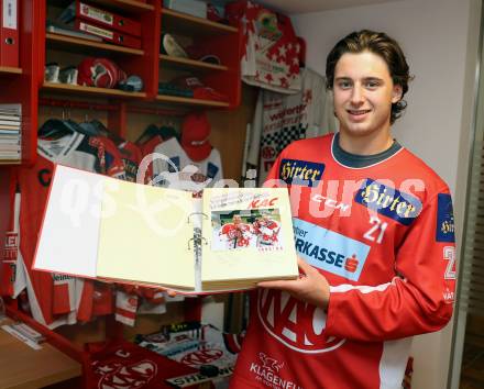 Eishockey. Besuch von Marco Kasper bei KAC Archivar Robert Platzer. Marco Kasper. Hermagor, am 4.7.2024.