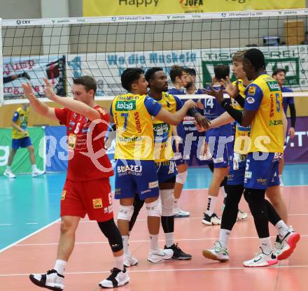 Volleyball CEV Cup. SK Sich/Dob gegen Lausanne. Jubel (Aich/Dob). Bleiburg, am 9.10.2024.