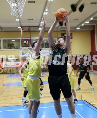 Basketball 2. Liga 2024⁄2025. Grunddurchgang 18. Runde. Woerthersee Piraten gegen Union Deutsch Wagram Alligators. Emilio Rozmann Piraten Daniel Schuch Wagram Alligators. Klagenfurt am 8.2.2025.Foto: Kuess