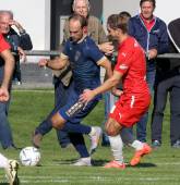 Fussball Kaerntner Liga. Grafenstein gegen KAC. Lukas Michael Rutnig Grafenstein Florian Magnes KAC. Klagenfurt am 27.9.2025.Foto: Kuesswww.qspictures.net