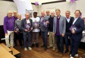 Fussball. Buchpraesentation 105 Jahre SK Austria Klagenfurt. Helmut Koenig Ewald Tuermer Guenther Golautschnig Franz Hasil Kasim Ramadhani Friedrich Koncilia Kurt Widmann Alois Jagodic Walter Koch Hannes Haubitz. Klagenfurt am 10.12.2025.Foto: Kuesswww.qspictures.net