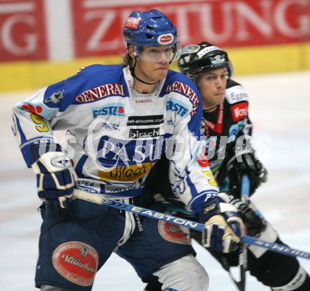 Eishockey Bundesliga. VSV gegen EHC Liwest Linz. Thomas Raffl (VSV), Philipp Lukas (Linz). Villach, am 12.1.2007.