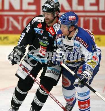 Eishockey Bundesliga. VSV gegen Liwest Black Wings Linz. Mickey Elick (VSV), Martin Hohenberger (Linz). Villach, am 20.3.2007.