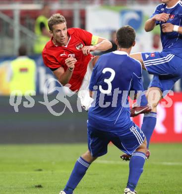 Fussball Laenderspiel Oesterreich gegen Slowakei. Marc Janko Oesterreich Lubomir Michalik Slowakei. Klagenfurt 10.8.2011.Foto: Kuess