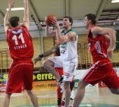Basketball Bundesliga. W?rthersee Piraten gegen WBC Wels. Andreas Kuttnig (Piraten), Stanek, Curtis Bobb (Wels). Klagenfurt, am 29.4.2007.