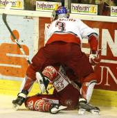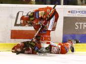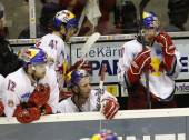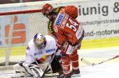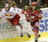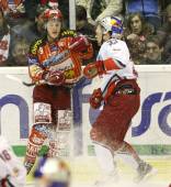 EBEL. Eishockey Bundesliga. KAC gegen EC Red Bull Salzburg. Jeff Shantz, (KAC), Manuel Latusa (Salzburg). Klagenfurt, am 4.3.2010.